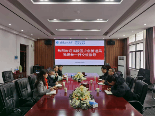 学院党委书记江本武对夷陵区应急管理局局长孙良金一行的到来表示热烈欢迎,局长孙良金介绍了目前夷陵区矿山工作人员的结构分布,重点介绍了矿山行业人才的需求现状。总工程师陈广甫也介绍了目前管辖矿区的分布与现代化建设程度。